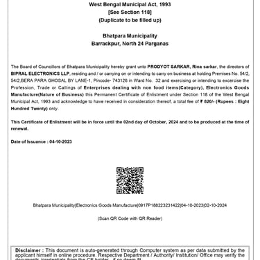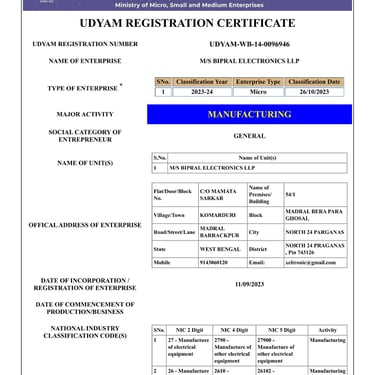 Bipral Electronics is a leading electronics manufacturing company based in Kolkata, India. We strive to deliver innovative and reliable products to enhance the lives of our customers.